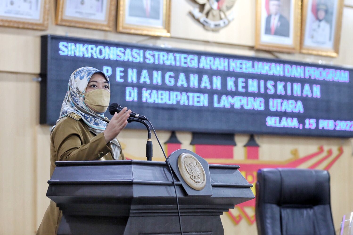 LAMPUNG UTARA, LK — Wakil Gubernur Lampung Chusnunia Chalim mengajak jajaran Pemkab Lampung utara untuk melakukan sinergi arah kebijakan dan program dalam penanganan kemiskinan di Lampung Utara.