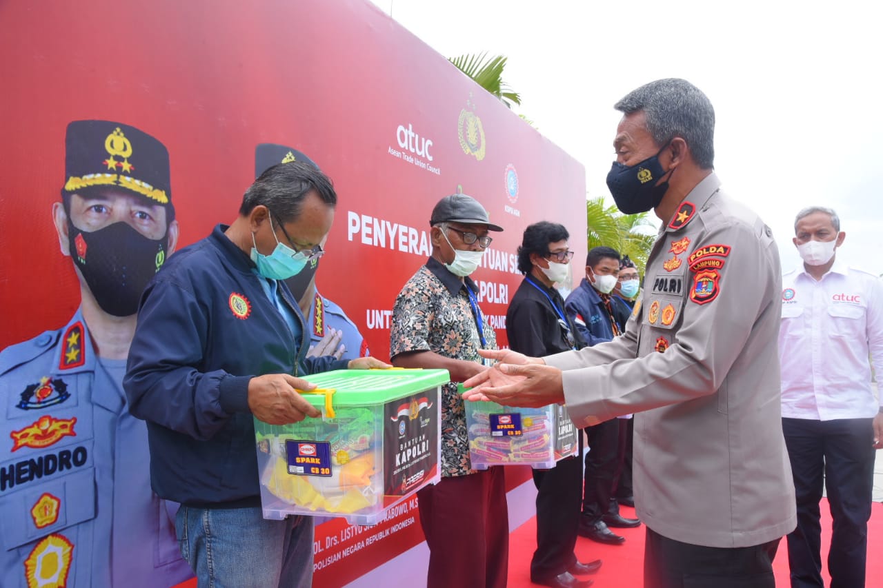 Dalam sambutannya, Wakapolda Lampung mengatakan, penyerahan bantuan sembako dari Kapolri ini, untuk buruh yang terdampak pandemi covid -19 seperti nelayan, pedagang, tukang becak dan lainnya.