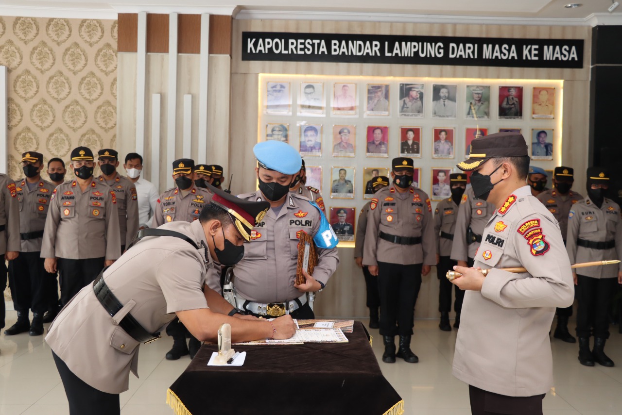 Serah terima jabatan ini juga memiliki makna penting dan strategis, karena terkait dengan dinamika proses kesinambungan pembinaan secara utuh dan menyeluruh baik pembinaan organisasi, pembinaan Personil, maupun regenerasi dilingkungan Polresta Bandar Lampung khususnya dan Polri pada umumnya, karena itu mekanisme pergantian pejabat Seperti ini, tidak hanya dimaknai sebagai pergantian personel semata, tetapi lebih dari itu merupakan proses kesinambungan pembinaan yang mendorong semangat pembaruan dan penyegaran bagi peningkatan peran organisasi, terang Kapolresta”.