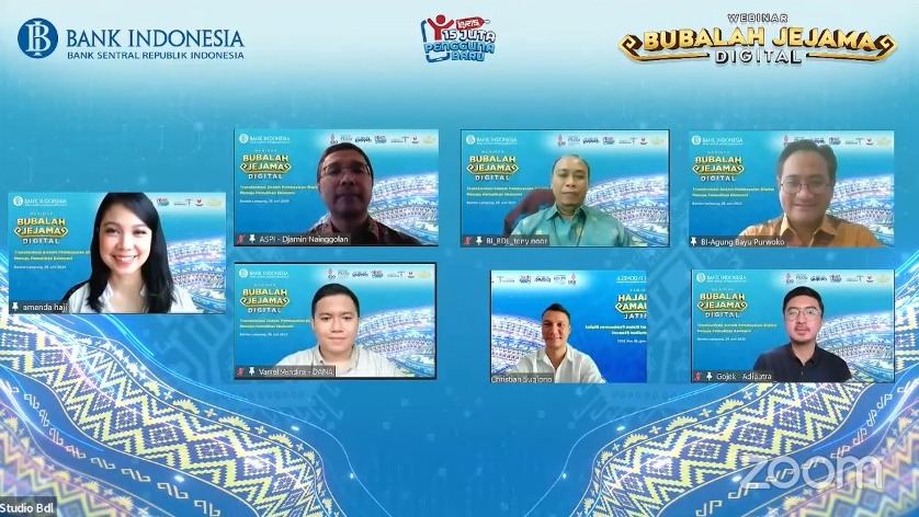 Webinar ini menghadirkan 5 (lima) narasumber utama dari berbagai bidang yaitu Bank Indonesia, Asosiasi Sistem Pembayaran Indonesia (ASPI), DANA, Goyek, dan Public Figure sekaligus Entrepreneur, Christian Sugiono, serta dipandu apik oleh Presenter TV, Amanda Hajj. Selain itu, kegiatan ini dihadiri secara daring oleh unsur pemerintah daerah di Lampung, pelaku UMKM Lampung dan beberapa daerah lain, praktisi perbankan (Bank Umum dan BPR) di Lampung, akademisi dan mahasiswa/pelajar penerima beasiswa Bank Indonesia, serta masyarakat umum khususnya mnillenials.