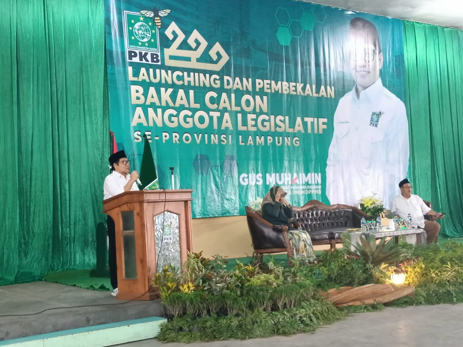 NATAR, LK – Dr.H. Abdul Muhaimin Iskandar Ketua Umum DPP PKB hadir di provinsi Lampung untuk memberikan semangat sekaligus membuka pembekalan bakal calon anggota legislatif (bacaleg) se-Lampung.