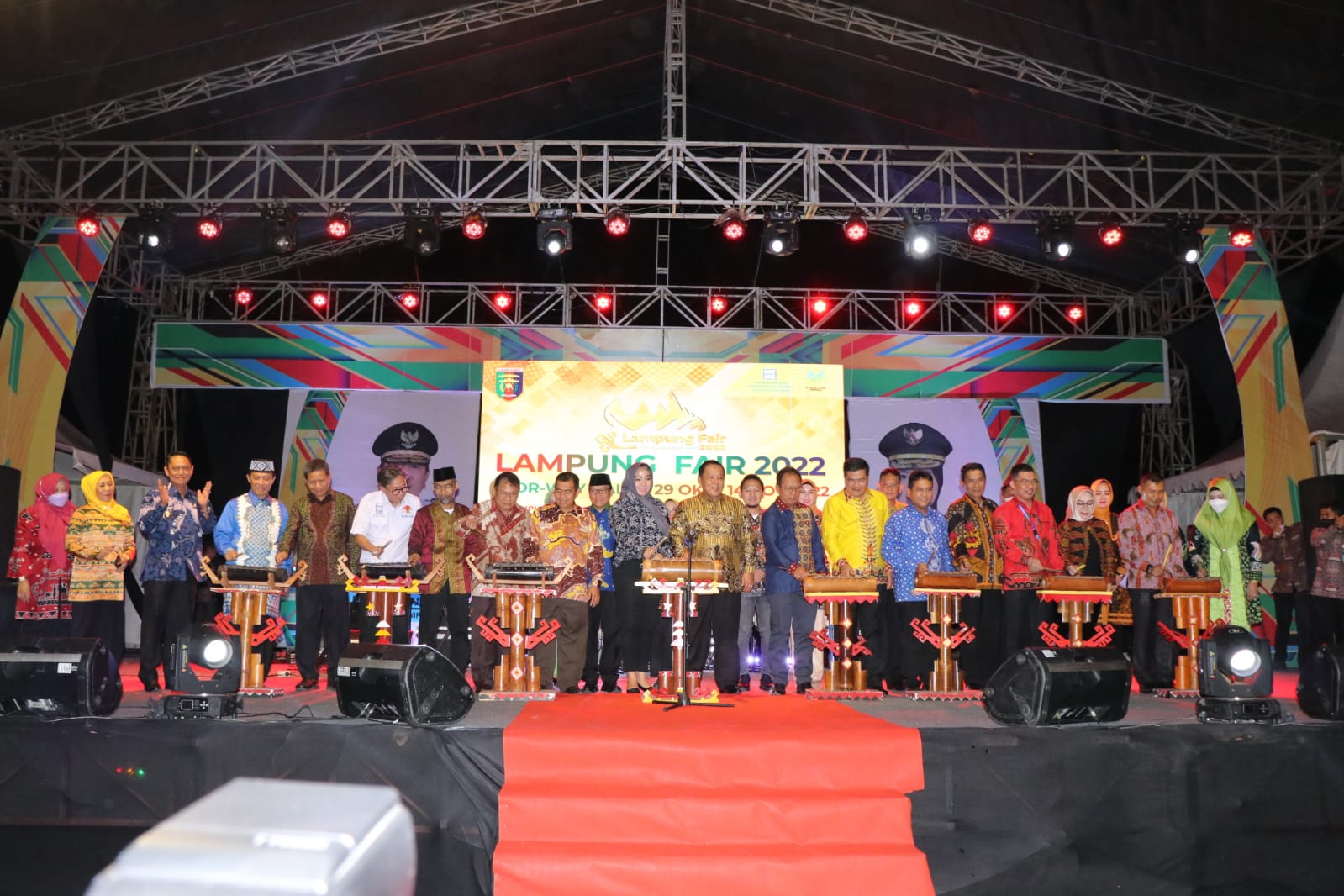 Lampung Fair 2022 dibuka secara meriah melalui pertunjukan kolosal Tari Begawi Jejama dan Marching Band Bahana Krakatau Lampung Selatan.