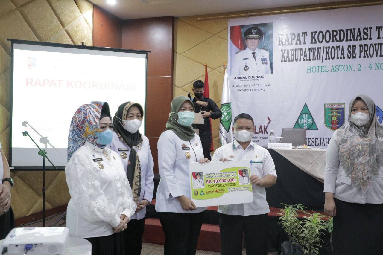 Dalam kegiatan ini juga dilakukan pemberian bantuan hibah kepada 30 sekolah yang digunakan untuk pengembangan unit prasarana UKS/M Kabupaten/Kota se- Provinsi Lampung.**
