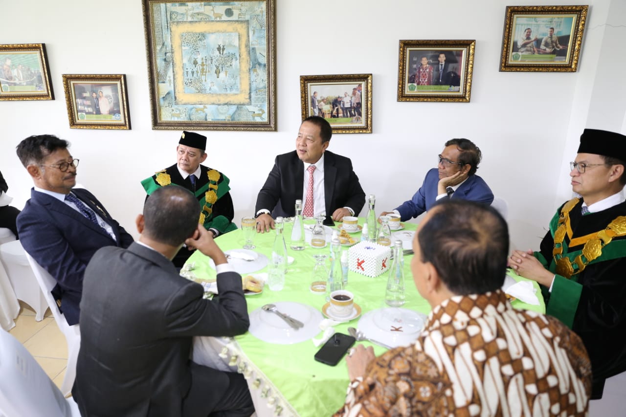 Menko Polhukam Mahfud MD menyampaikan selamat atas pencapaian jabatan akademik tertinggi yang diterima oleh Taruna Ikrar.