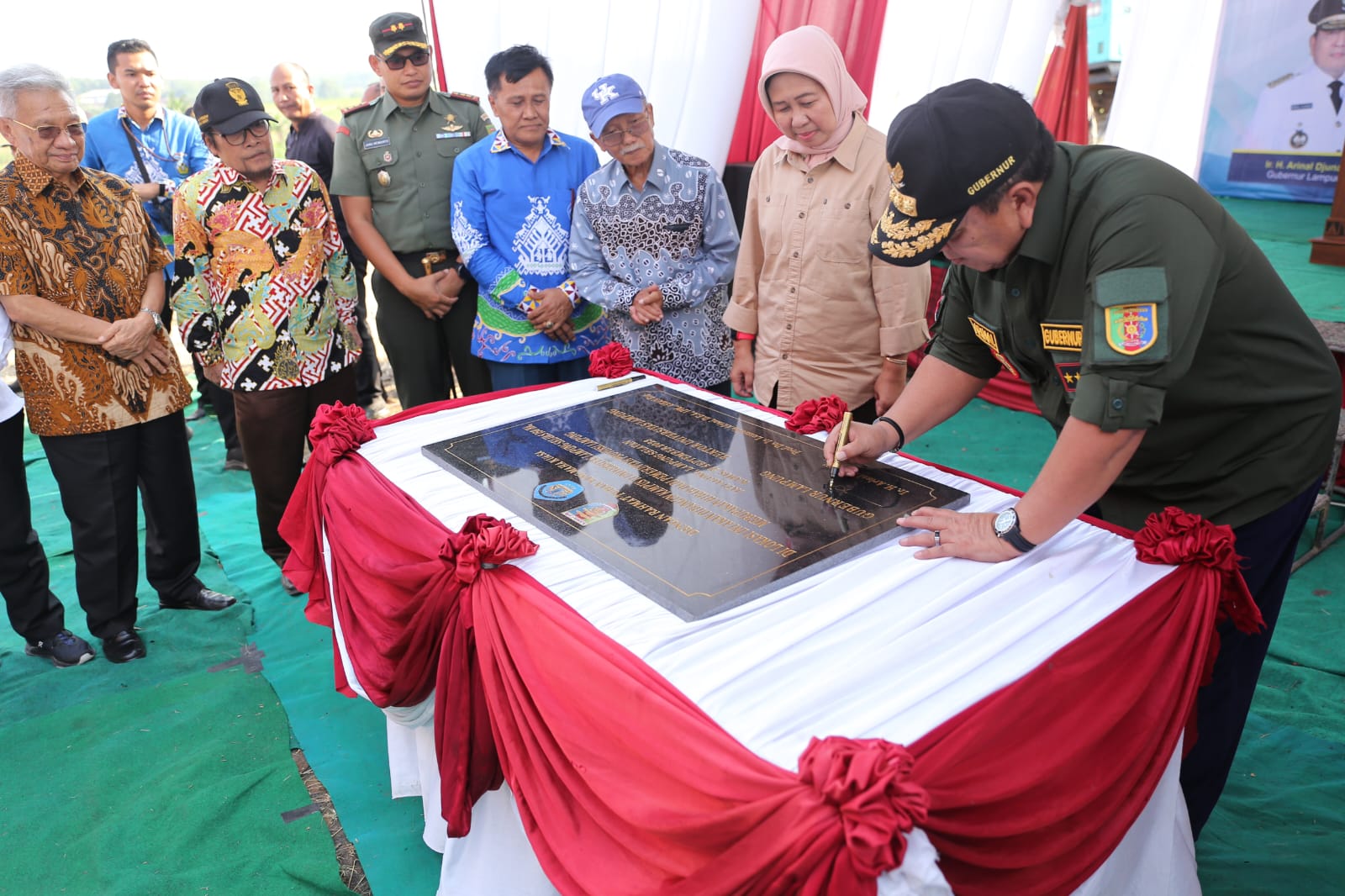Gubernur Lampung Arinal Djunaidi menandatangani prasasti hibah tanah 150 hektare di Kotabaru, Lampung Selatan untuk pengembangan Kampus II Universitas Lampung.