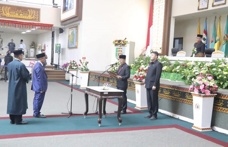 Ketua DPRD Provinsi Lampung, Mingrum Gumay secara resmi melantik Sugianto untuk mengisi kekosongan jabatan yang sebelumnya diisi oleh Ahmad Fitoni.***