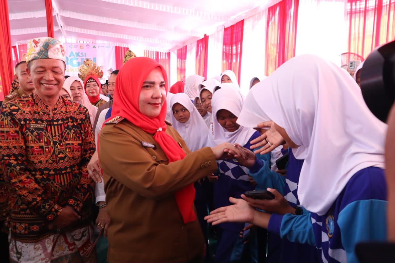 LAMPUNGKHAM.COM-Walikota Bandar Lampung Hj. Eva Dwiana menghadiri serta membuka Gerakan Aksi Bergizi di Sekolah, Senin 23 Oktober 2023.