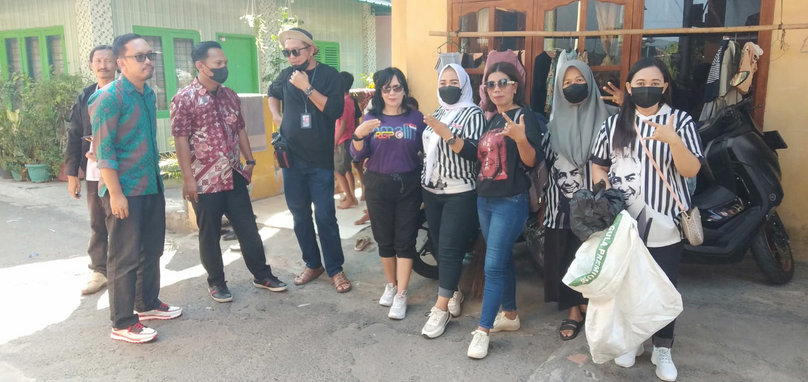 “Pak, pak, ini nenek ini mau juga kaosnya. Eh mau kan elu, Ganjar ini Ganjar!” ujar kocak seorang nenek warga RT 07 yang ikut sibuk memanggil tetangganyi, kontan ia tawari demi semua tetangganyi terbagi kaos, stiker Ganjar-Mahfud. Mereka pun senang.