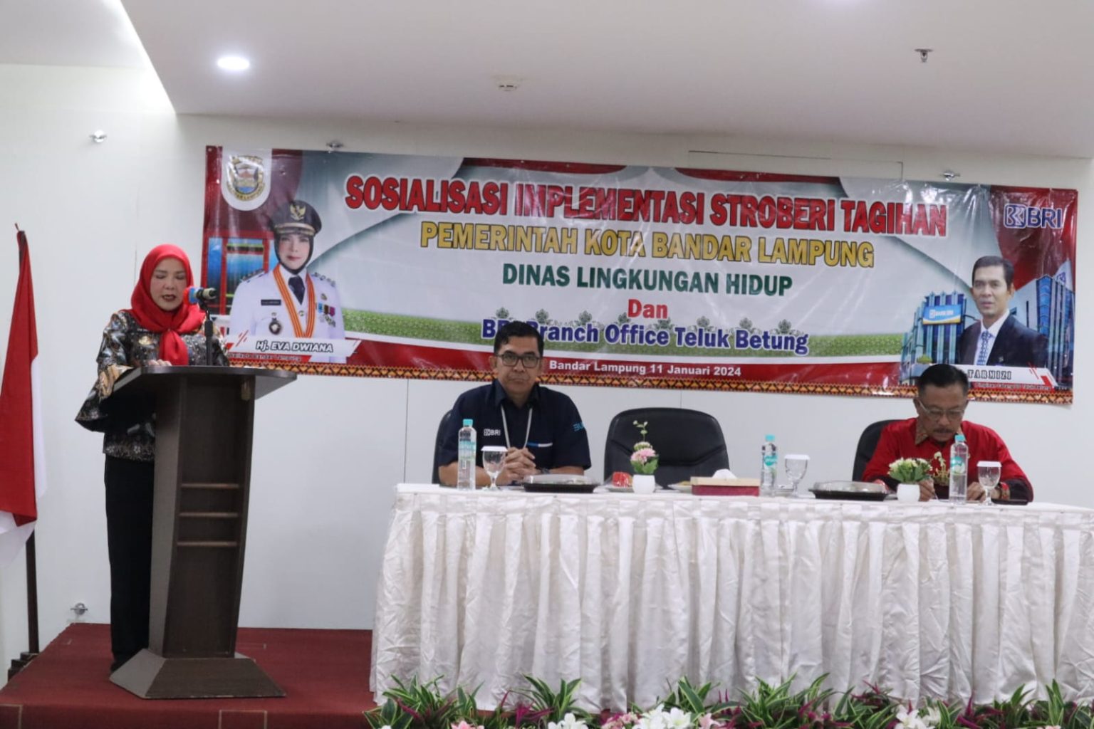 Walikota Bandar Lampung Eva Dwiana menghadiri sosialisasi Aplikasi “STROBERI” (Solusi Transaksi Elektronik BRI) yang merupakan alat pembayaran retribusi sampah berbasis digital.