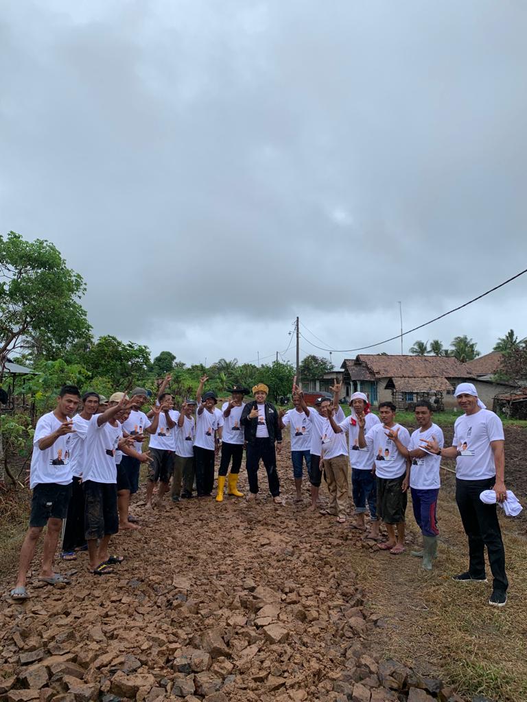 Karena itu, warga disini mengajukan bantuan kepada ketua relawan IM Ganjar Lamsel atau bang Merik Havit untuk membeli batu sabes dan terkumpul enam kubik untuk menimbun jalan ini,” ujar Junaidi tokoh masyarakat setempat.