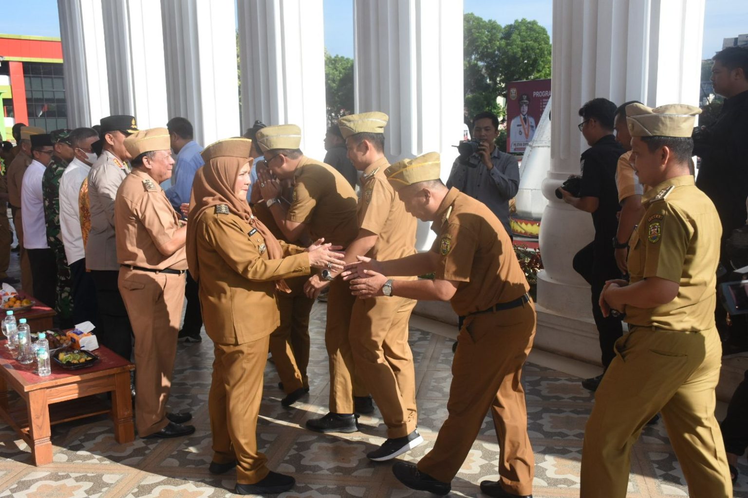 LAMPUNGKHAM.COM-Pemerintah kota Bandar lampung menggelar apel mingguan dan di sertai Halal bihalal setelah cuti bersama Hari raya idul fitri 1445 H. Di halaman kantor pemerintah kota Bandar, senin, 22 April 2024.