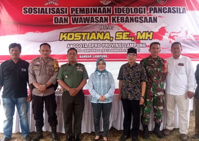 Diketahui sosialisasi Pembinaan Ideologi Pancasila yang digelar Anggota DPRD Provinsi Lampung Kostiana, turut menghadirkan Danramil Panjang Mayor infantri Sinaga dan Kabid Kesbangpol Provinsi Lampung Herman Soleh, serta puluhan warga setempat.***
