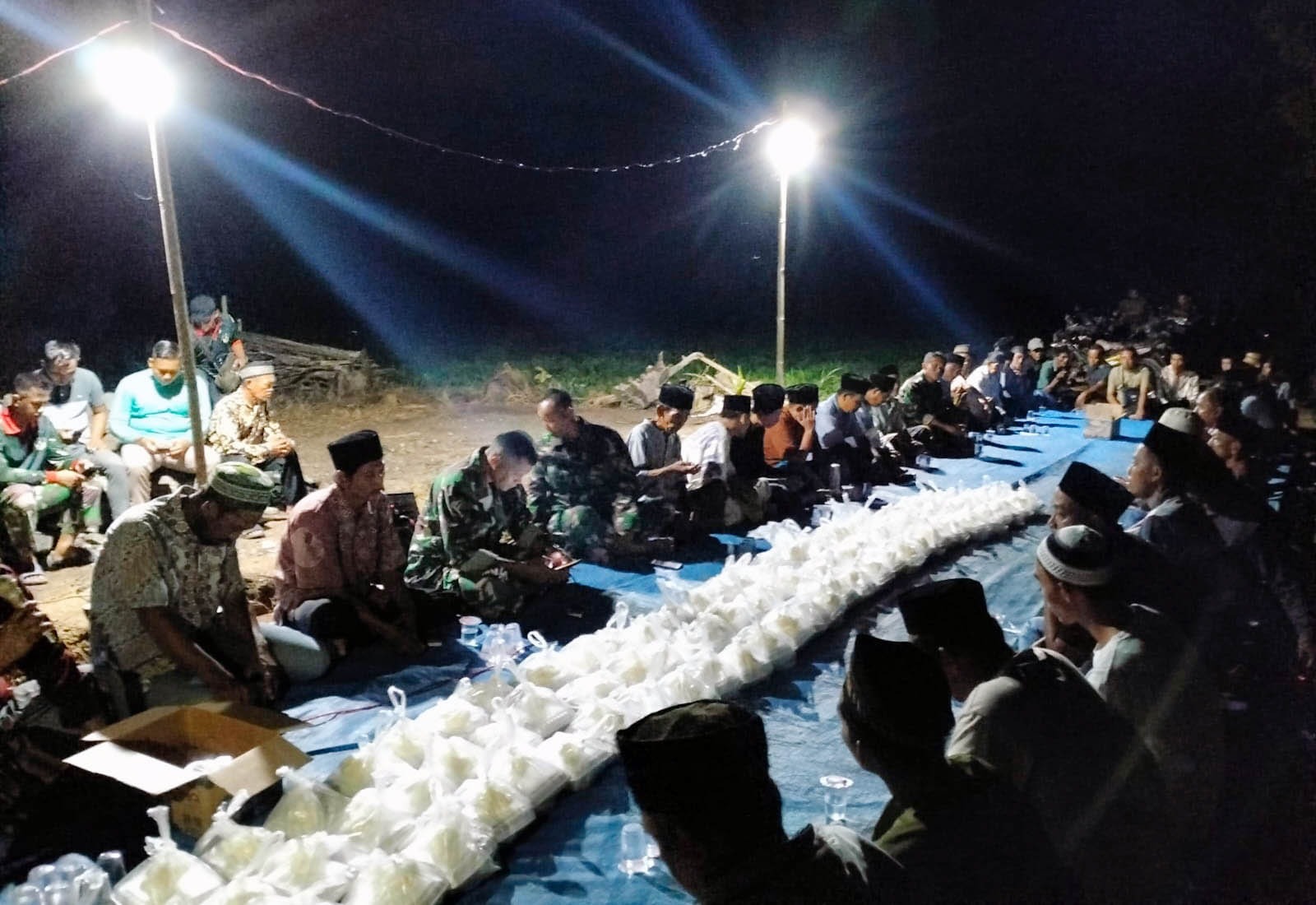 Satuan Tugas (Satgas) TNI Manunggal Membangun Desa (TMMD) ke-120 Kodim 0421/Lampung Selatan bersama warga Desa Budi Lestari, Kecamatan Tanjung Bintang, menggelar syukuran di lokasi sasaran fisik pembangunan jalan onderlagh, Rabu malam 5 Juni 2024.