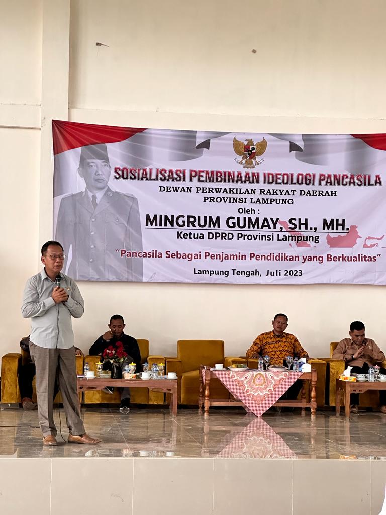 Dalam pemaparannya, Ketua DPRD Provinsi Lampung menyebutkan bahwa pentingnya pembekalan serta penebalan Ideologi Pancasila di era disrupsi teknologi ini sebagai salah satu cara menekan konfliksitas yang terjadi ditengah masyarakat.