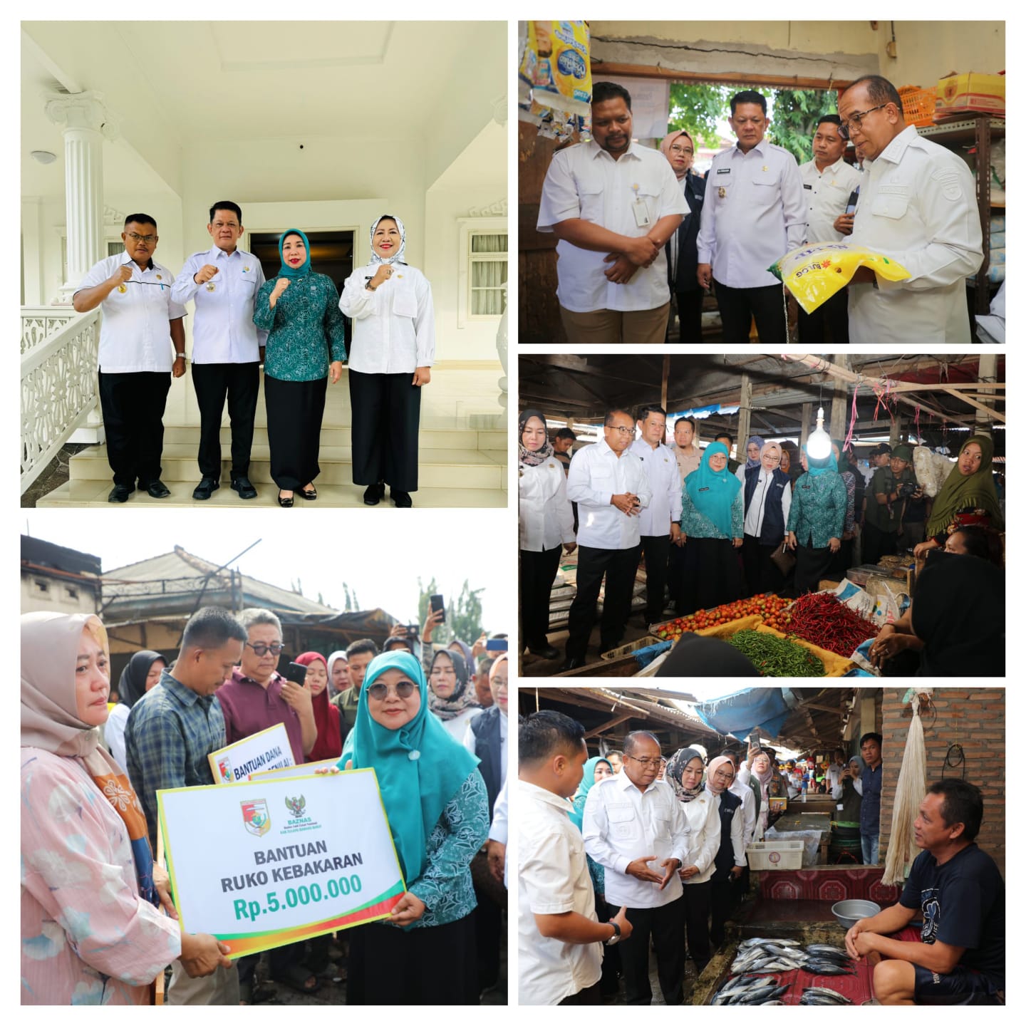 Sementara Pj. Gubernur Samsudin berkeliling pasar sembari menyapa para pedagang. Dalam kunjungan ini, Samsudin memberikan bantuan dana kepada pemilik kios yang mengalami kebakaran beberapa hari yang lalu.