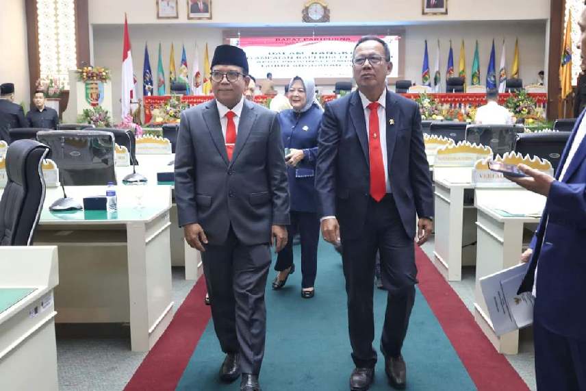 LAMPUNGKHAM.COM-Rapat Paripurna Istimewa DPRD Provinsi Lampung dalam rangka memperingati HUT Kemerdekaan RI ke-79 dengan acara mendengarkan Pidato Kenegaraan Presiden Republik Indonesia secara virtual di Ruang Sidang Paripurna DPRD Provinsi Lampung, Jum’at (16/8/2024).