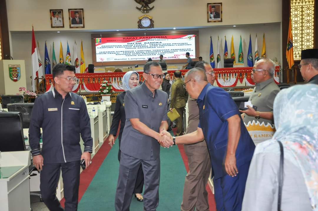LAMPUNGKHAMPj.COM – Gubernur Lampung Sampaikan Jawaban Atas Pandangan Umum Fraksi DPRD Terkait Raperda APBD 2025 dalam Rapat Paripurna