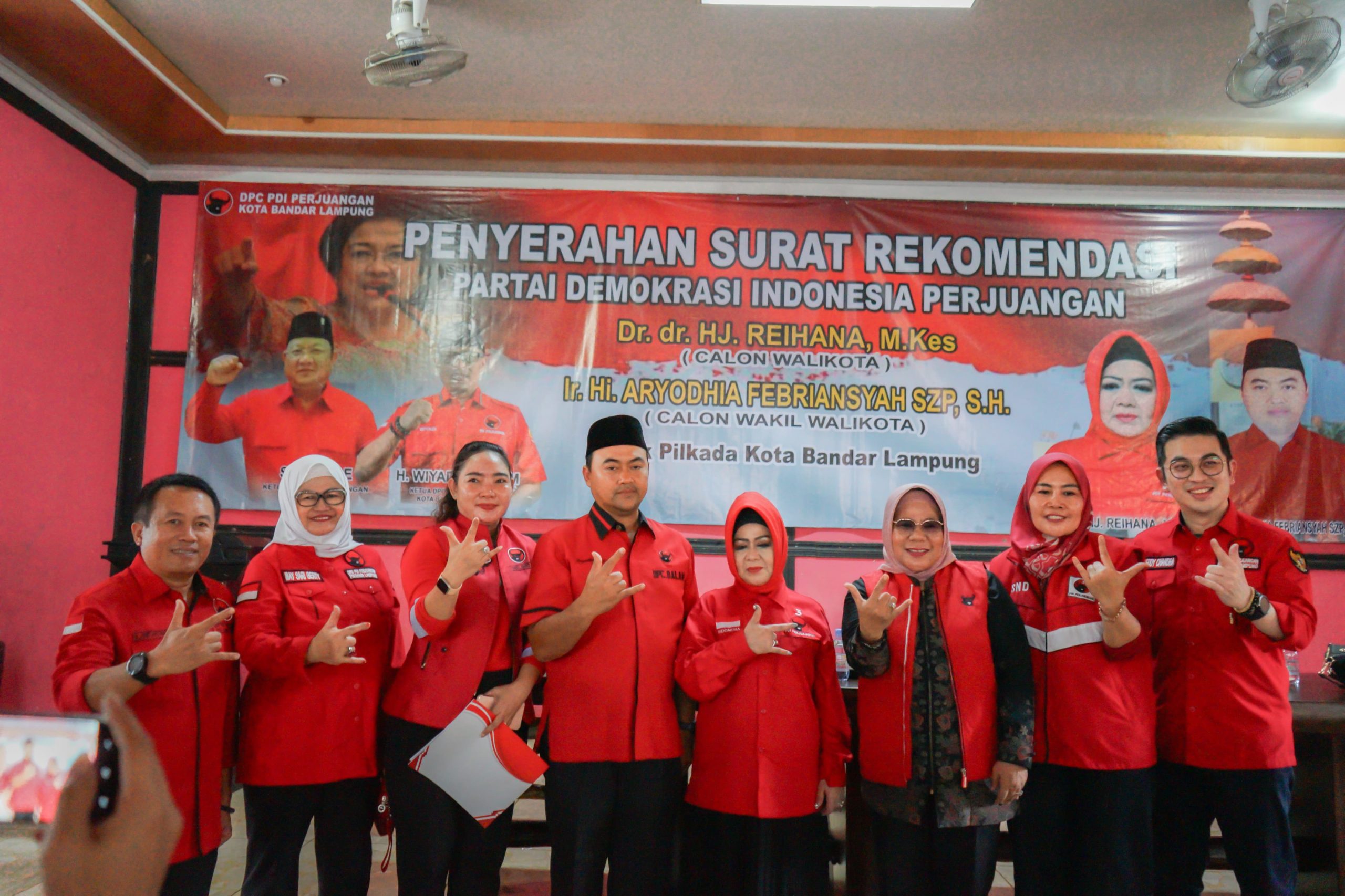 Bunda Reihana bakal menantang Bunda Eva, lewat PDIP. Kepastian ini setelah dilakukan penyerahan surat rekomendasi di kantor DPC PDIP Kota Bandar Lampung, Rabu 28 Agustus 2024.