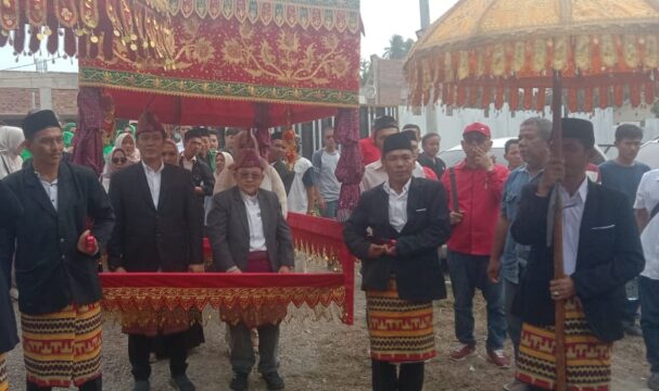 Diantar dan di iringi dengan arak-arakan adat Lampung Pesisir Barat, Alam Gemiser, oleh ribuan masyarakat simpatisan dan pendukung dedy_topan
