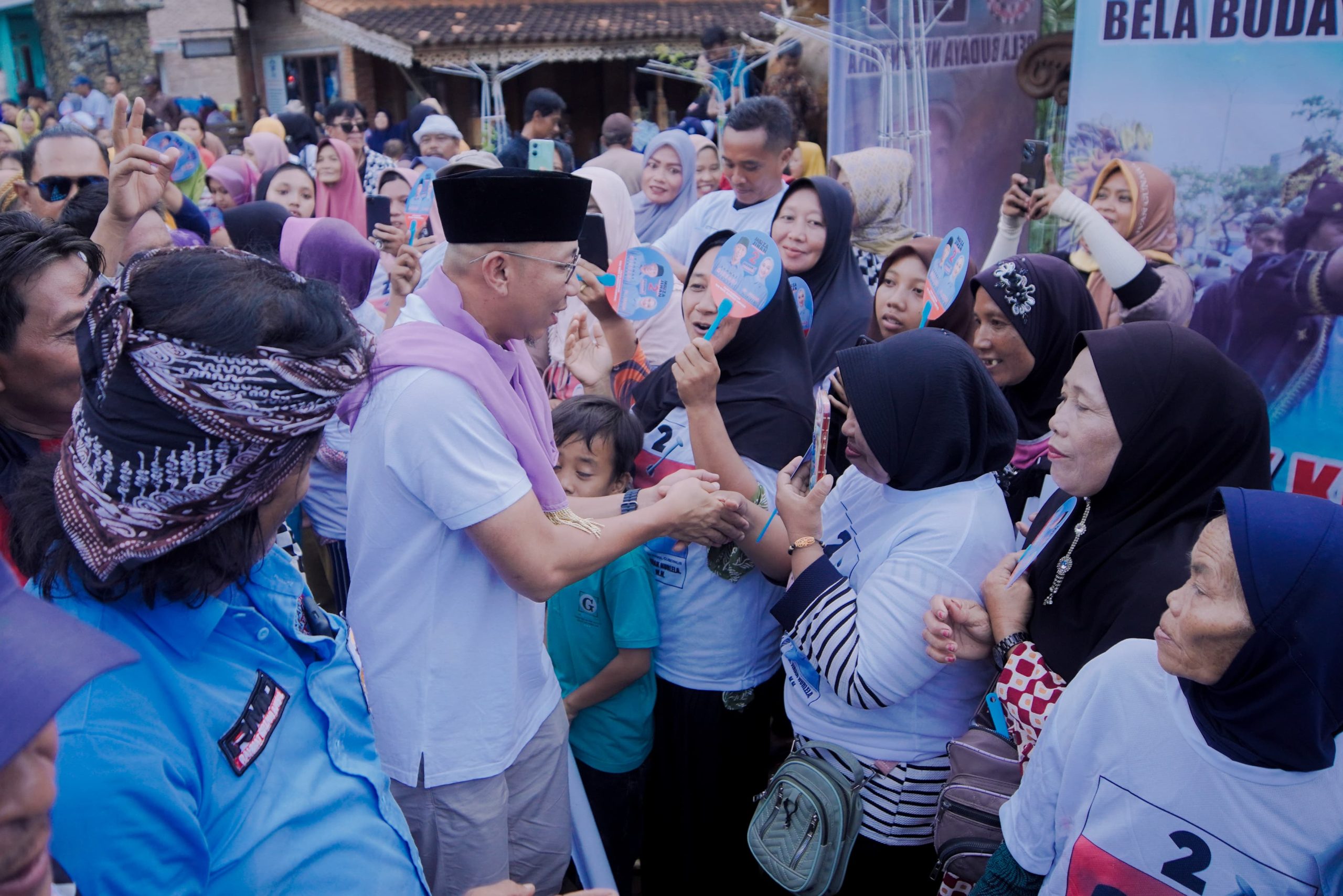 Pasangan calon Gubernur dan Wakil Gubernur Lampung, Rahmat Mirzani Djausal (Mirza) dan Jihan Nurlela, turut hadir dan larut dalam kegembiraan bersama masyarakat.