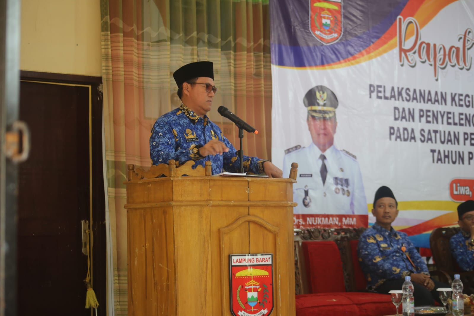 LAMPUNGKHAM.COM-Pj. Bupati Lampung Barat Drs. Nukman, MM., memimpin Rapat Koordinasi (Rakor) terkait pelaksanaan kegiatan belajar mengajar dan penyelenggaraan pendidikan pada satuan pendidikan semester II tahun pelajaran 2025, Senin 17 Februari 2025.
