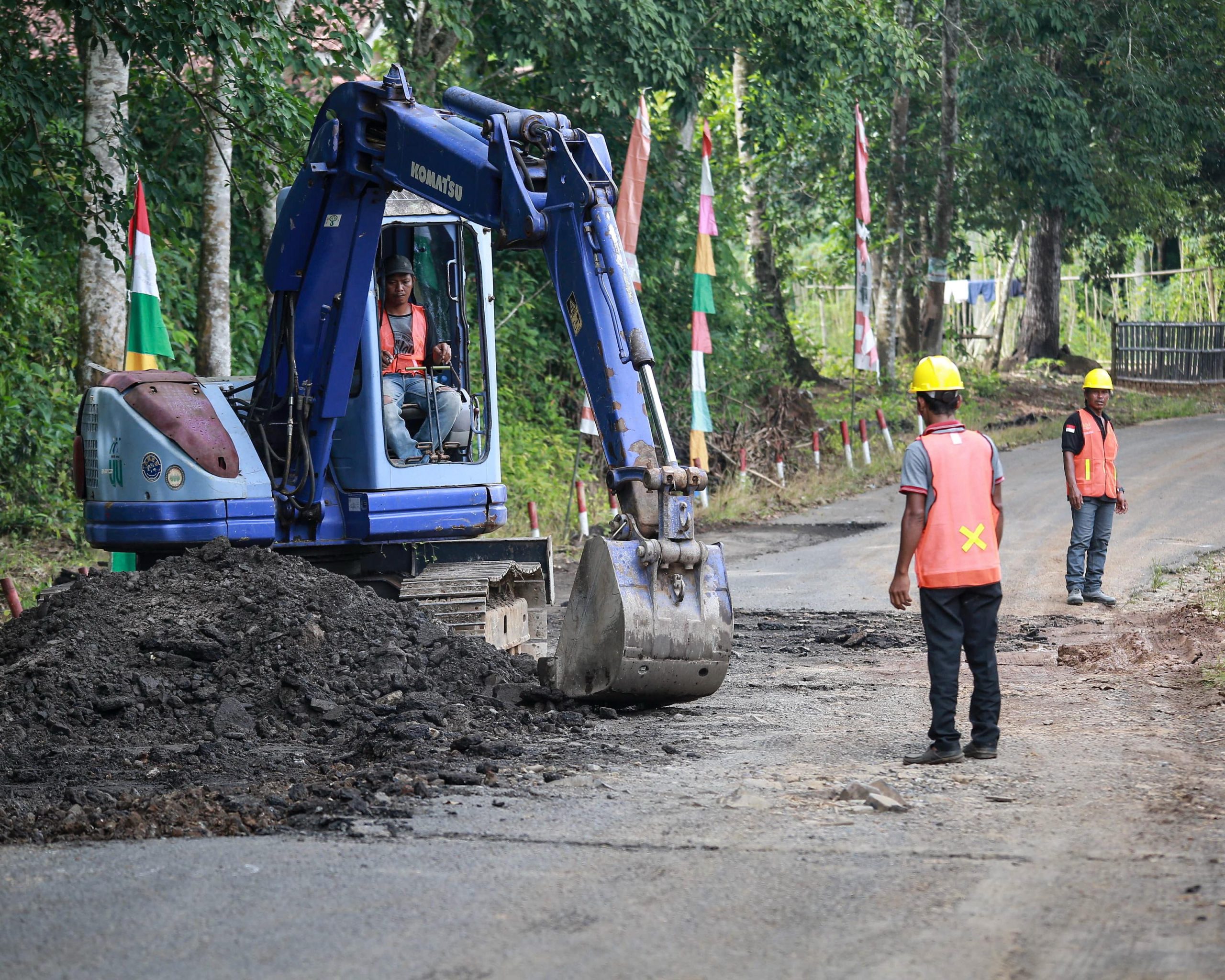 Dilanjutkan oleh Wakil Gubernur Jihan Nurlela mengawali perbaikan jalan di Desa Nibung Kecamatan Melinting Kabupaten Lampung Timur, Selasa 11 Maret 2025.