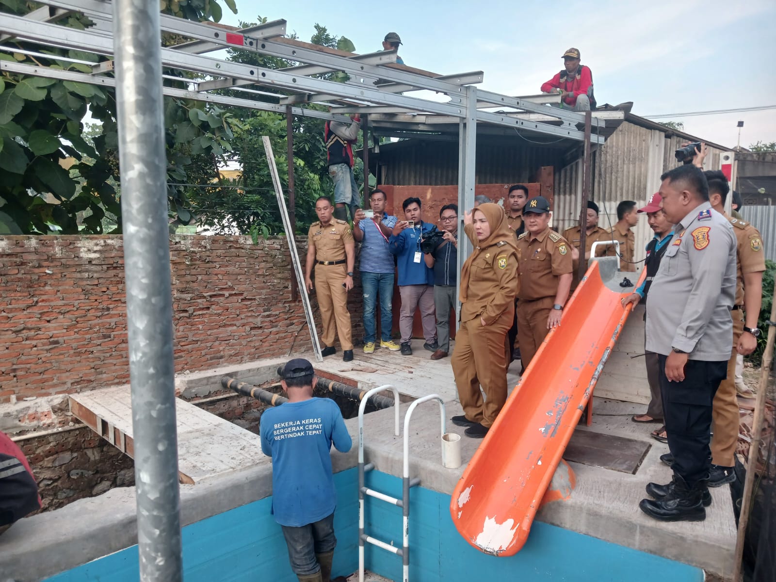 Tak hanya itu, orang nomor satu di Kota Tapis Berseri itu dikejutkan dengan adanya wisata kolam renang lengkap dengan wahana perosotan untuk anak.