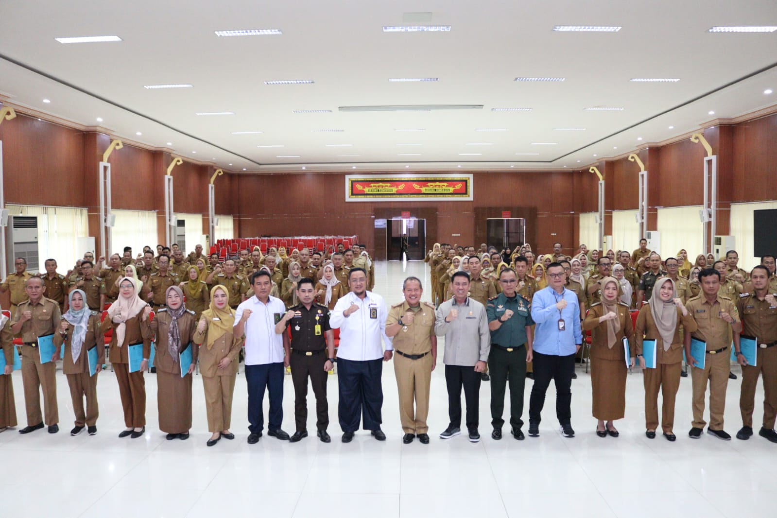 LAMPUNGKHAM.COM-Walikota Bandar Lampung Hj. Eva Dwiana Dalam Hal Ini Diwakili Oleh Sekretaris Daerah (Sekda) Kota Bandar Lampung Bapak Iwan Gunawan Pada Acara Penyampaian Pemberitahuan Pajak Terhutang (SPPT), Pajak Bumi dan Bangunan Perkotaan dan Pedesaan (PBB-P2) dan Daftar Himpunan Ketetapan Pokok PBB P-2 2025, Serta Stiker Barcode Objek PBB Kota Bandar Lampung, Senin (21/04/2025).