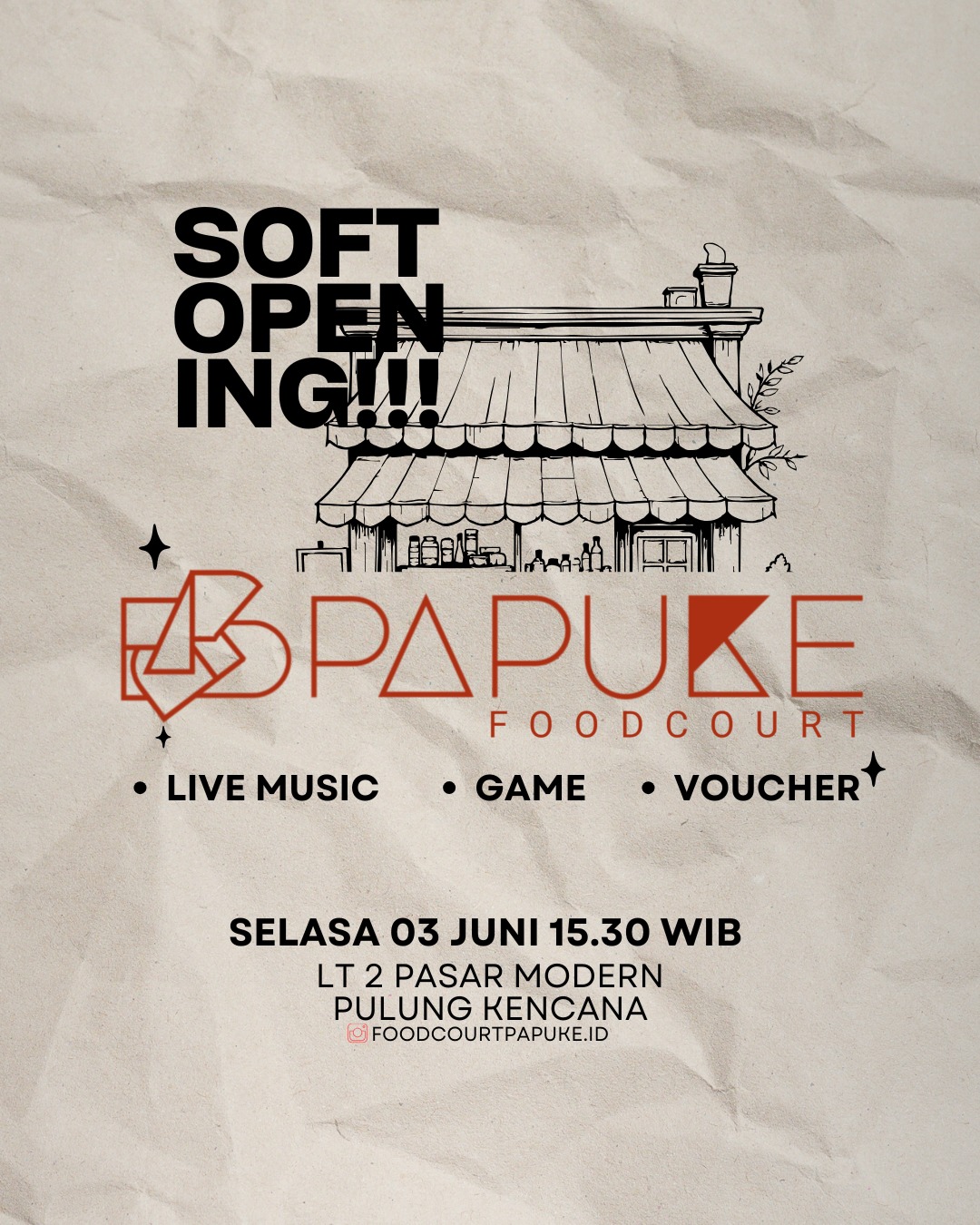 Dalam Soft opening ini juga dimeriahkan dengan berbagai hiburan menarik, seperti penampilan live music, permainan seru (games) bagi pengunjung, serta pembagian voucher belanja yang dapat digunakan di sejumlah tenant kuliner.