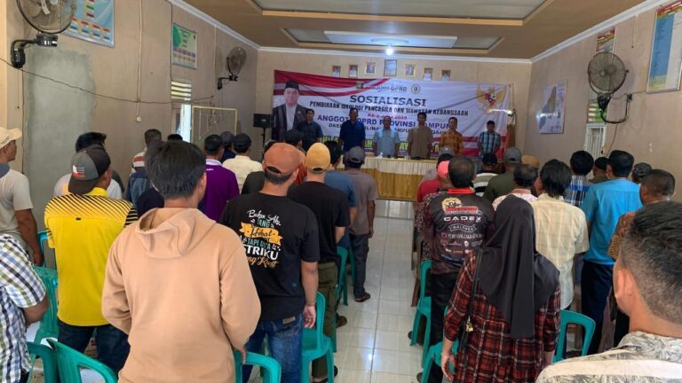 LAMPUNGKHAM.COM-Anggota DPRD Provinsi Lampung, Abdullah Surajaya, meyosialisasikan Pembinaan Ideologi Pancasila dan Wawasan Kebangsaan di SB 1, Kampung Sumber Bahagia, Kecamatan Seputih Banyak, Lampung Tengah, Sabtu 19 Juli 2025.