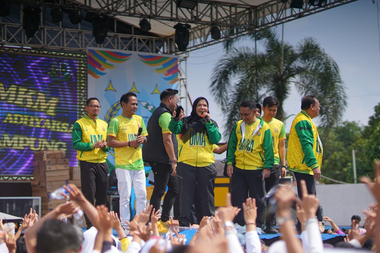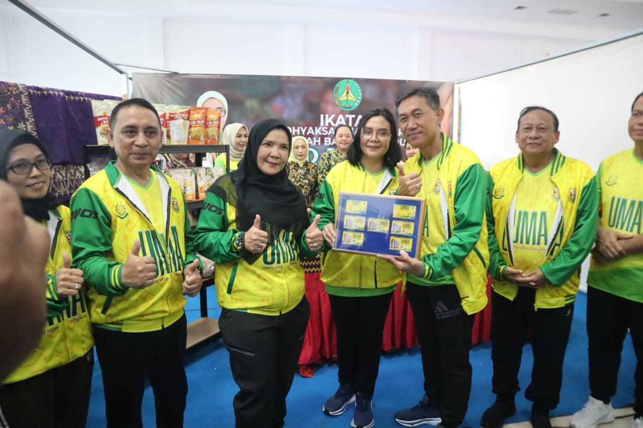 Walikota Bandar Lampung Hj. Eva Dwiana menghadiri Acara Gebyar UMKM bersama UMKM Mitra Adhiyaksa (UMA) yang berlokasi di Gedung Graha Mandala, Jum’at 17 Oktober 2025.