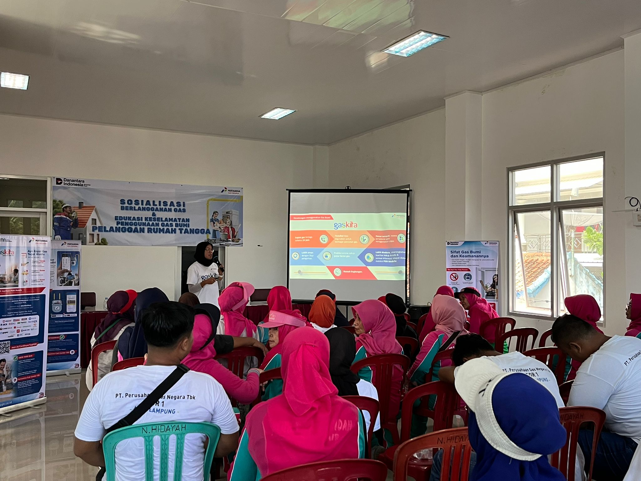 Dalam sesi sosialisasi, tim City Gas Sales PGN Area Lampung memberikan informasi tentang proses pendaftaran layanan gas bumi, tata cara penggunaan gas bumi yang aman, hingga prosedur pelaporan jika terjadi kendala.