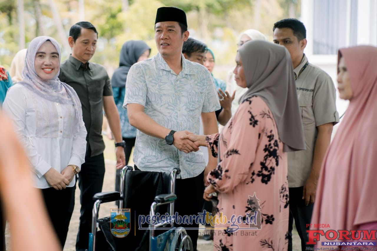 Bupati Pesisir Barat Dedi Irawan, menyerahkan secara simbolis bantuan Asistensi Rehabilitasi Sosial (ATENSI) Program Sentra Terpadu Inten Soeweno Bogor Kementerian Sosial (Kemensos) kepada 120 orang, di kantor Kelurahan Pasar Kota Krui Kecamatan Pesisir Tengah, Sabtu 8 November 2025).