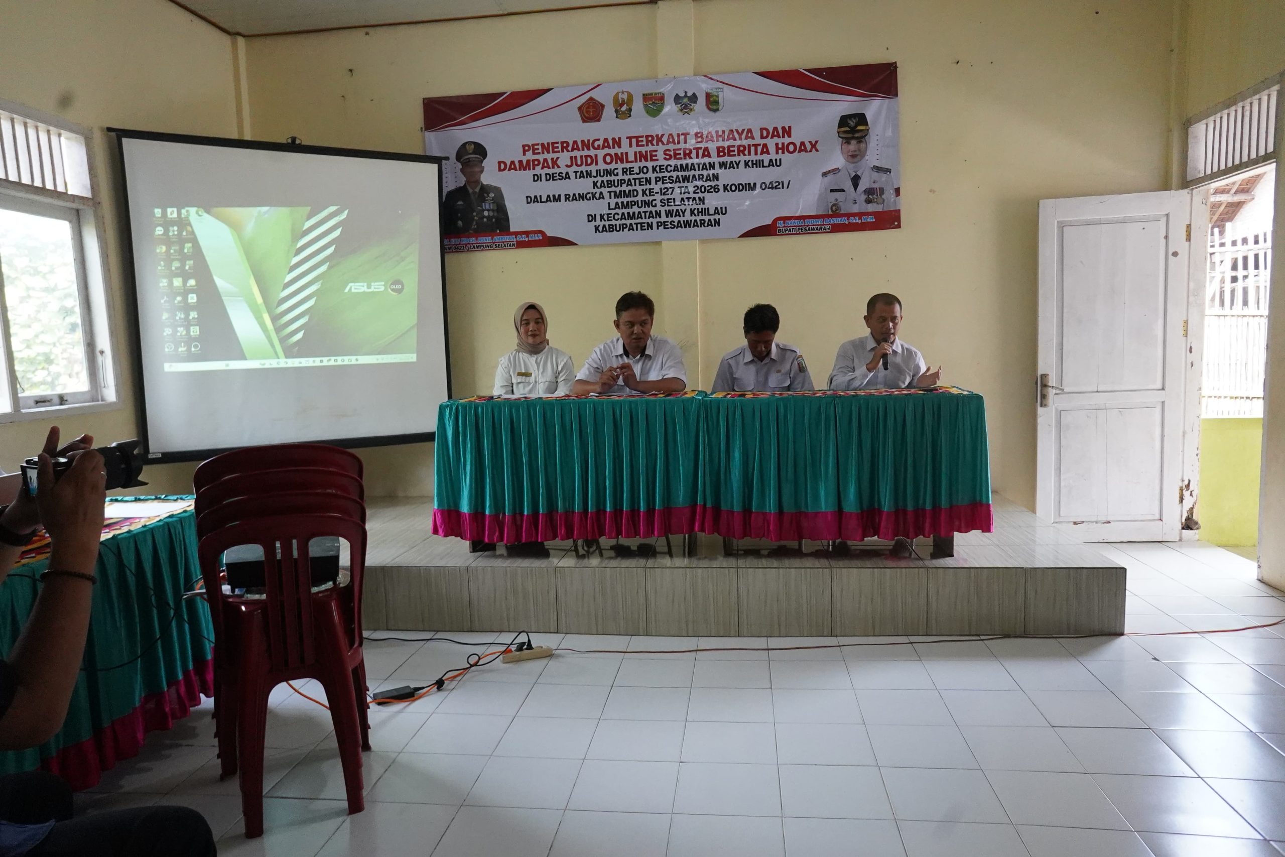 Selain pembangunan fisik, program TMMD Kodim 0421/LS juga menggelar penyuluhan kepada masyarakat Desa Tanjung Rejo, Kecamatan Way Khilau, Kabupaten Pesawaran, terkait bahaya judi online dan penyebaran berita hoaks di media sosial.