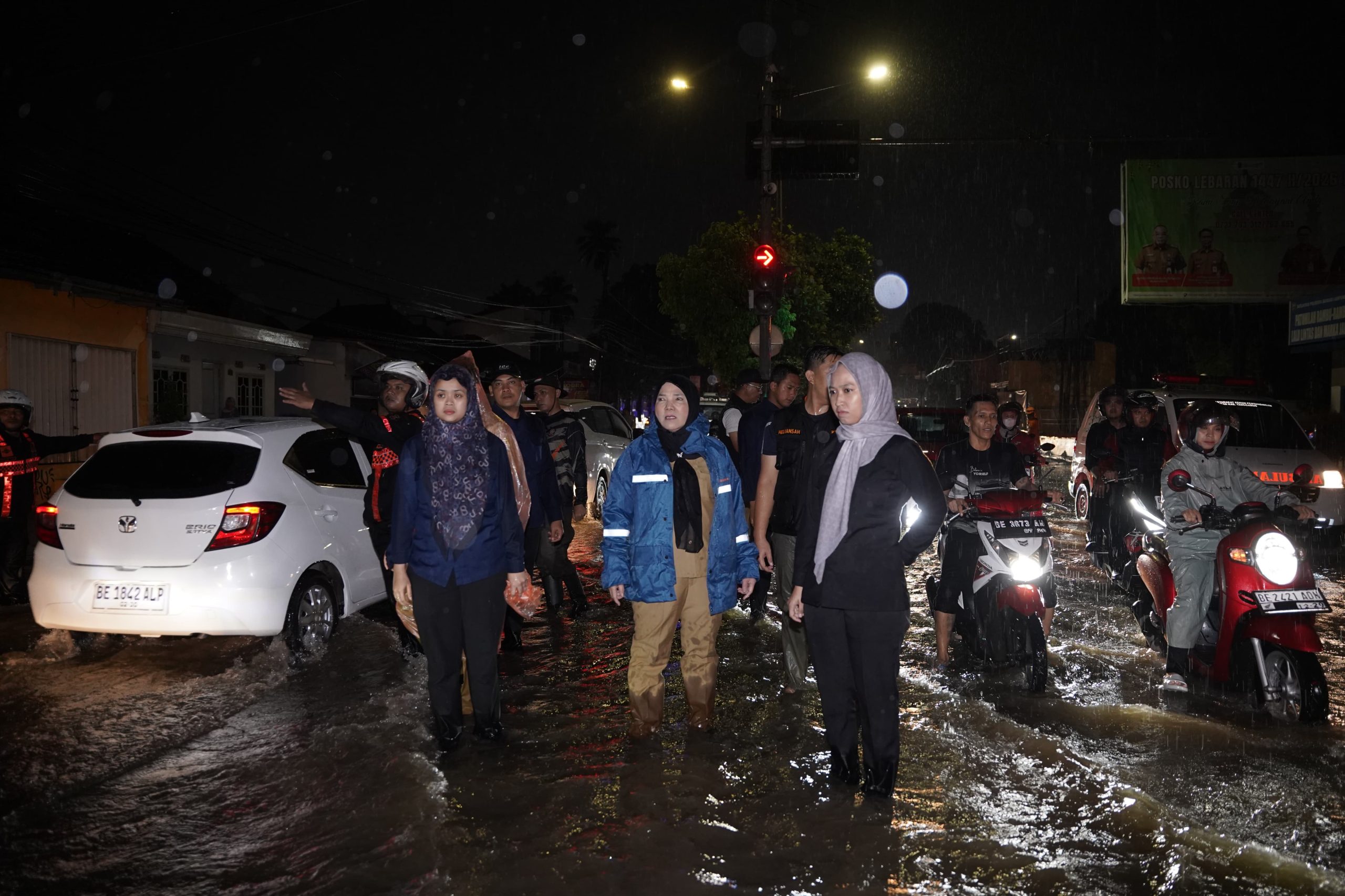 LAMPUNGKHAM.COM-Wali Kota Bandar Lampung Eva Dwiana bergerak cepat pascahujan deras yang mengguyur Kota Tapis Berseri, untuk memantau kondisi masyarakat.