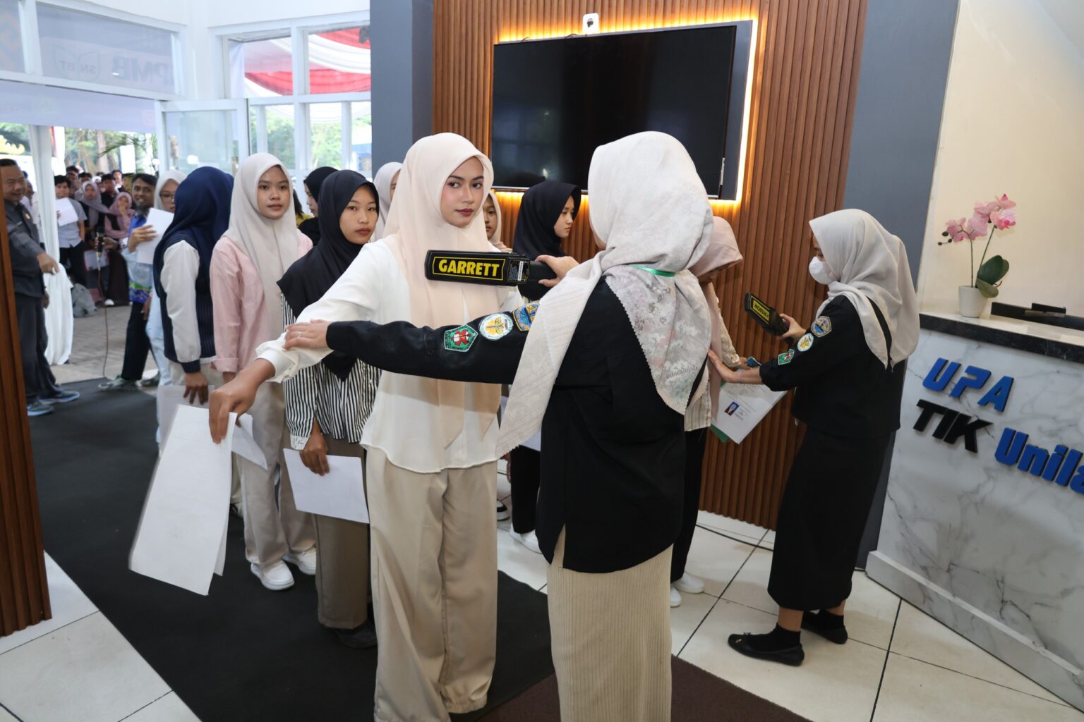 Dalam wawancara pada Kamis, 23 April 2026, Kepala UPA TIK Unila Dr. Eng. Ir. Mardiana, S.T., M.T., IPM., menjelaskan, pengamanan UTBK tahun ini dimulai dari lapis pertama berupa skrining menggunakan metal detector, pemeriksaan manual oleh petugas, hingga pembatasan ketat terhadap barang bawaan peserta.