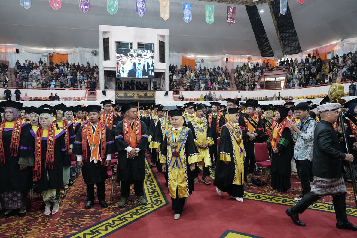Rektor Unila, Prof. Dr. Ir. Lusmeilia Afriani, D.E.A., IPM., ASEAN Eng., dalam sambutannya menyampaikan rasa syukur atas terselenggaranya wisuda serta mengucapkan selamat kepada para wisudawan beserta keluarga.