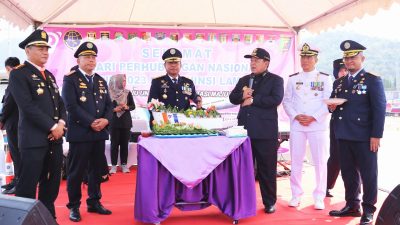 LAMPUNGKHAM.COM-Gubernur Arinal Hadiri Upacara Hari Perhubungan Nasional 2023 di Dermaga B Pelabuhan Panjang Gubernur Lampung…