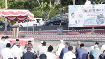 LAMPUNGKHAM.COMWaliKota Bandar Lampung Lampung Eva Dwiana menjalankan salat Idulfitri di Stadion Mini Waydadi, Sukarame, Bandar…