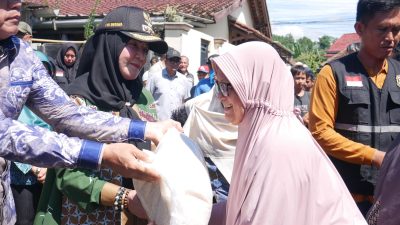 LAMPUNGKHAM.COM-Wali Kota Bandar Lampung Eva Dwiana saat memberikan bantuan kepada pedagang ikan di Pasar Gudang…
