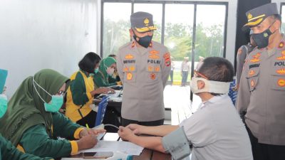 BAKAUHENI, LK — Wakapolda Lampung Brigjen Pol Subiyanto cek kesiapan pelayanan gerai vaksinasi Presisi di…